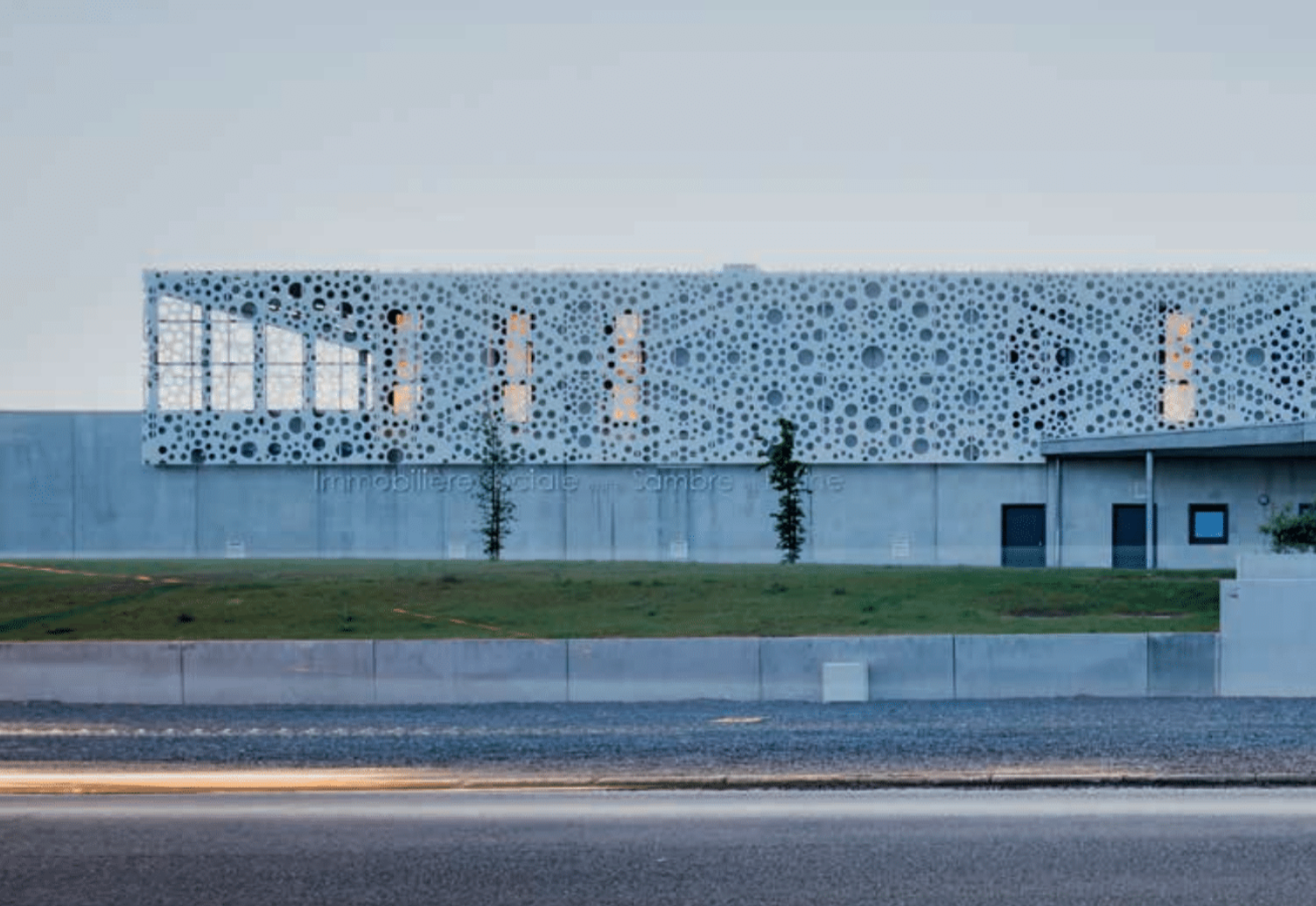 Le projet est né de la volonté du maître de l’ouvrage de quitter le centre-ville deBinche pour implanter ses bureaux en entrée de ville. Quitter une infrastructuredésuète et obsolète au profit d’un nouveau bâtiment performant. Ainsi le bâtimentse trouve sur l’une des voies de pénétrations vers Binche, sur une parcellesurplombant le domaine public. Son implantation confère à l’Immobilière Socialeentre Sambre et Haine une grande visibilité. Une double peau offre au bâtimentune symbolique toute particulière en rendant hommage aux dentelliers etdentellières binchois(es).